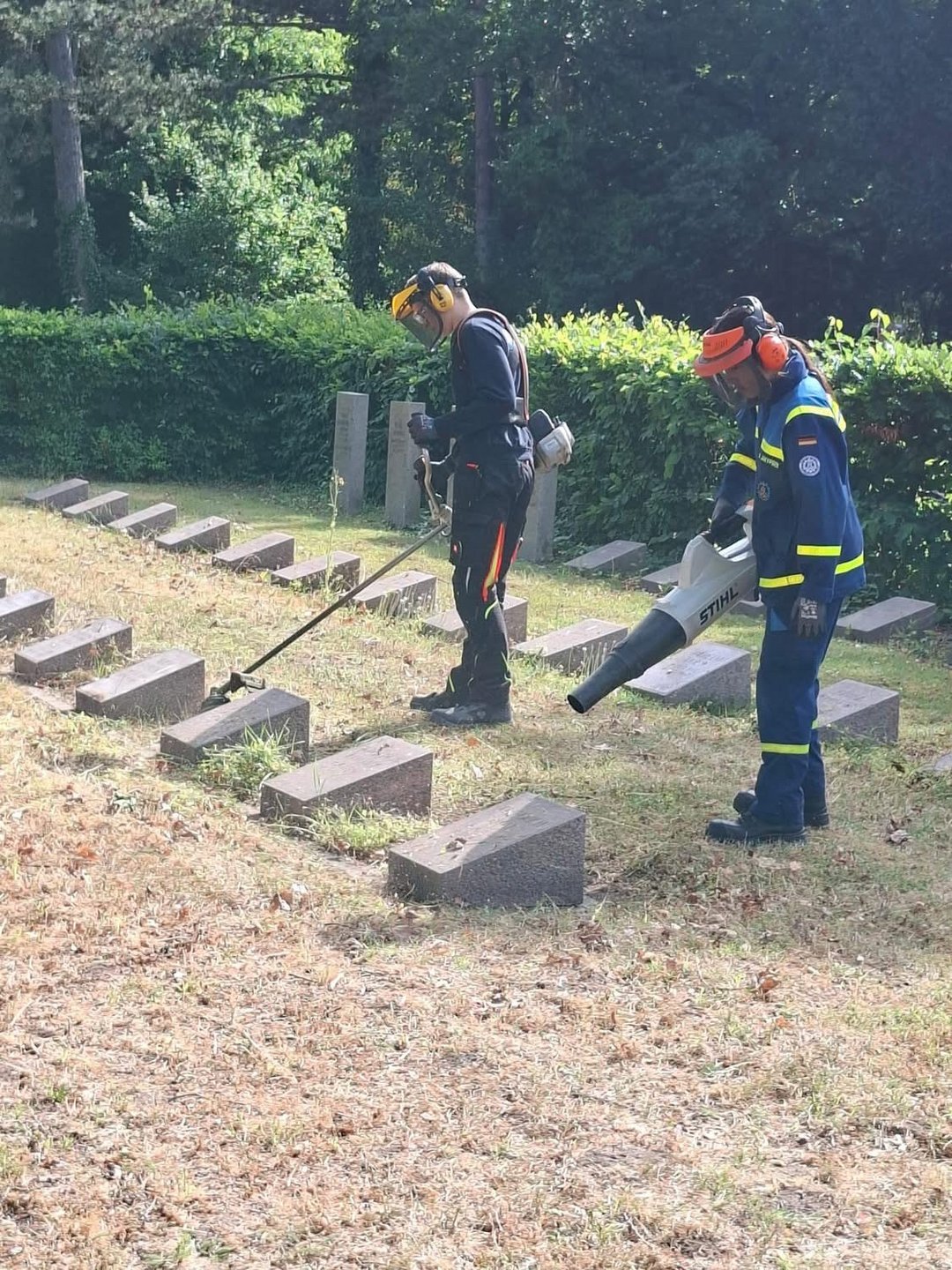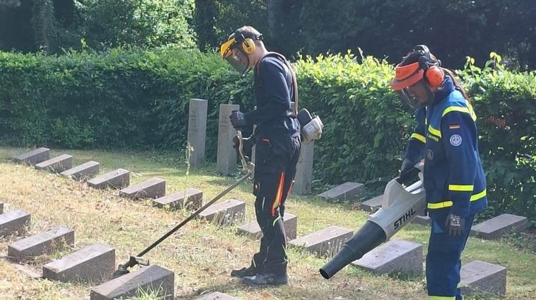 Mannheim, 24.05.25 Wieder einmal waren Mitglieder der THW Jugend Mannheim mit Begeisterung beim Pflegeeinsatz auf dem Hauptfriedhof Mannheim. Sie kümmerten sich mit viel Eifer um die Kriegsgräber. Organisiert hat diesen Einsatz Julian Keil, Ehrenamtlicher des Volksbundes in Mannheim. Auf kurzem Weg unterstützt das Friedhofsamt der Stadt Mannheim diese Aktionen.